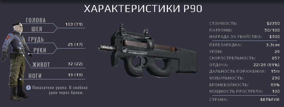 - До добавления в игру пулемёта Негев, P90 имел самый высокий темп стрельбы в игре.