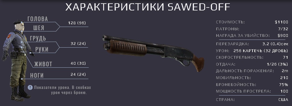 - Хотя из-за высокого разброса некоторые дробинки не смогут попасть в цель, но те, которые попали, вполне могут убить противника из-за их высокого урона (32 за 1 дробинку).